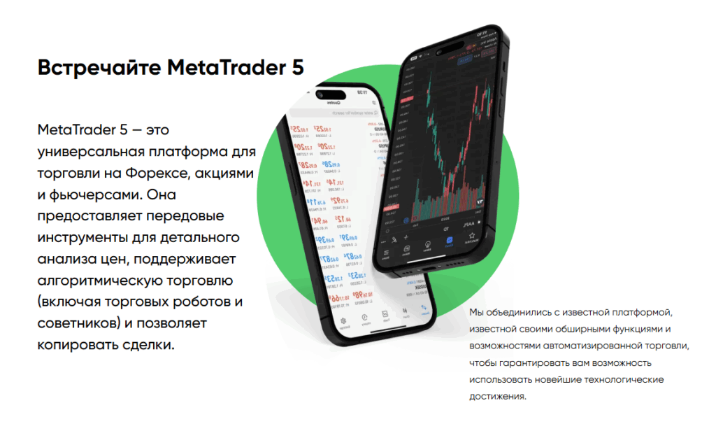 - Популярные торговые платформы MT4/MT5.